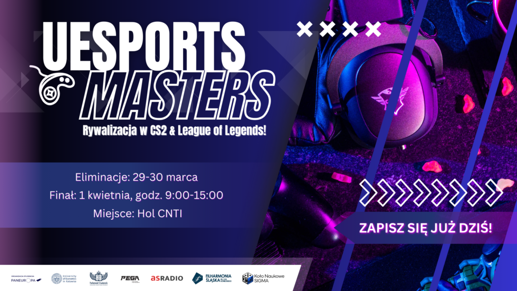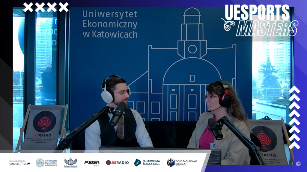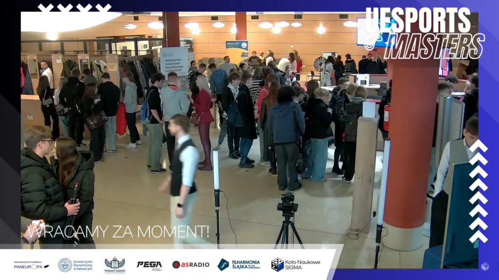 Nie przybyliśmy tam jednak wyłącznie po to, by zaprezentować się przed publicznością. Główną atrakcją było UESPORTS MASTERS czyli pierwszy w historii uczelni taki turniej e-sportowy, w którym rywalizacja wśród studentów i absolwentów toczyła się w tytułach CS2 oraz League of Legends. Naszym zadaniem było skomentowanie finałów w formule BO3, odbywających się w godzinach 9:00–14:00 które jak dobrze śledziliście były udostępnione na naszych Social Mediach oraz YouTube’ie. Same kwalifikacje do wydarzenia miały miejsce już w trakcie weekendu, a emocje wśród drużyn i administracji sięgały zenitu!
